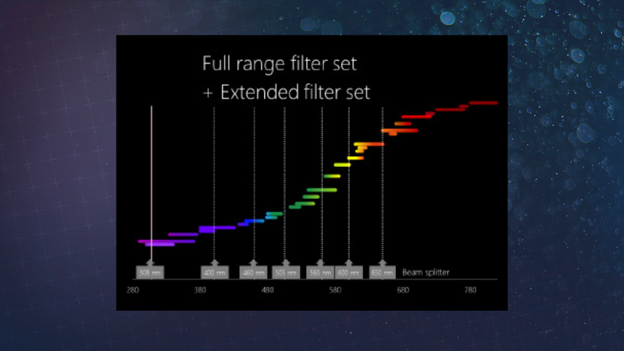 Le système de filtres avancé comprend 22 filtres optiques, couvrant un large spectre allant de l'infrarouge à la luminescence, avec de la place pour 8 filtres personnalisés supplémentaires (et 2 emplacements libres). La conception et le logiciel intuitif du Sense permettent aux utilisateurs de charger de nouveaux filtres dans la roue directement à l'avant de l'instrument, sans avoir besoin de faire appel à un ingénieur ou de démonter l'appareil.