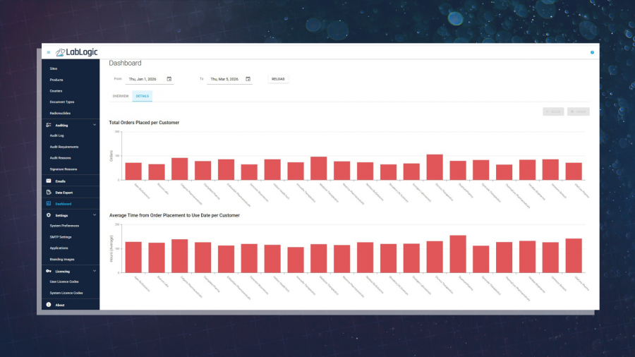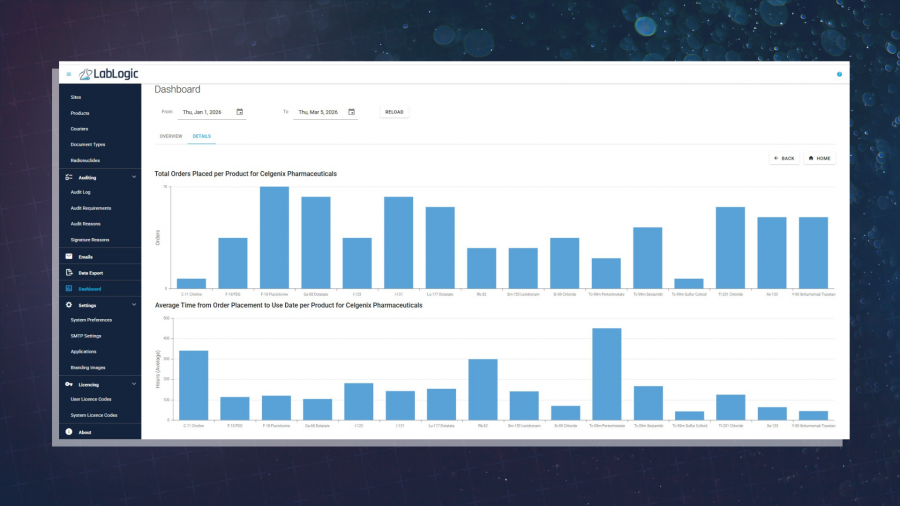 As a dedicated online ordering platform for radiopharmaceuticals, Orla allows manufacturers to see how their production is responding to customer demands. Designed for operational managers, production planners, and commercial teams, Orla’s dashboard brings together visual summaries and interactive charts to turn raw order data into actionable insight.
